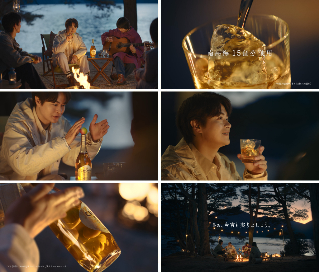 前回に引き続き、主演は瀬戸康史さん。各CMでは、仲間と一緒にキャンプファイヤーを囲んで堪能する「The CHOYA」の魅力を、叙情的な演出とともにお届けします。