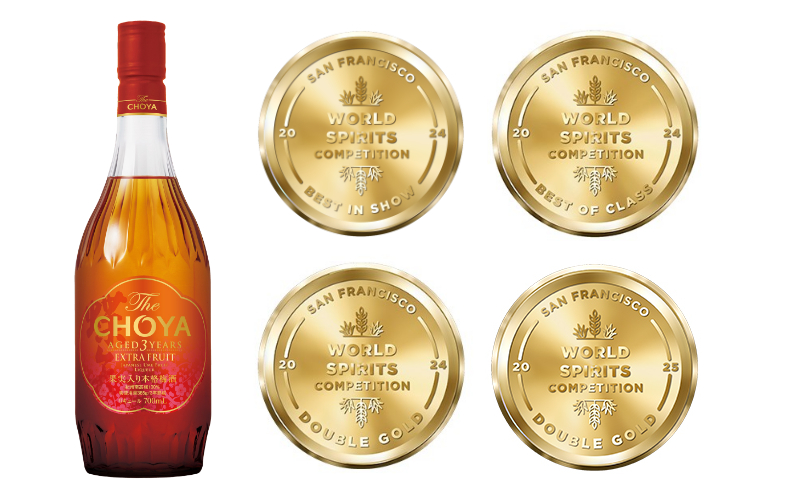 「The CHOYA AGED 3 YEARS EXTRA FRUIT」は、国際的な酒類品評会「The San Francisco World Spirits Competition (サンフランシスコ・ワールドスピリッツ・コンペティション、以下SFWSC)2024」にて、最高金賞「ダブルゴールド(Double Gold)」を受賞。さらに、フルーツリキュールのクラス最高賞「ベスト オブ クラス(Best of Class Fruit Liqueur)」、リキュール全カテゴリーの中での最高栄誉賞「ベスト イン ショウ(Best in Show Liqueur)」を受賞し、リキュール世界No.1の称号を獲得いたしました。